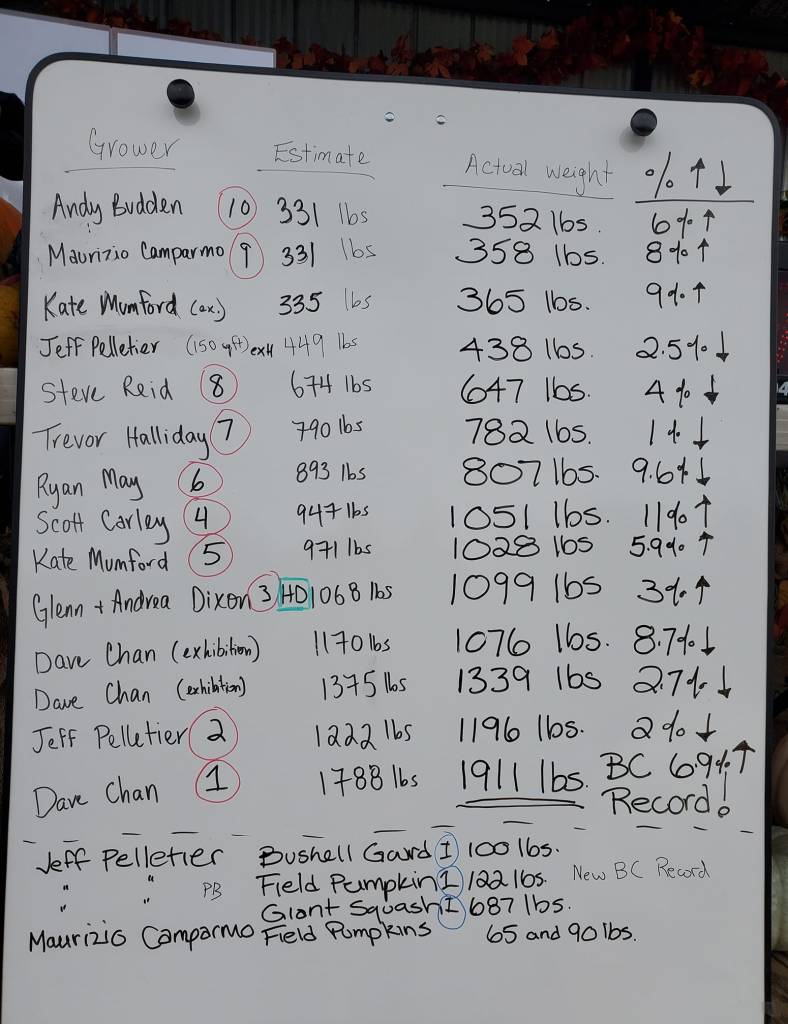 2021’s photos and media are being shared on our Giant Pumpkin BC Facebook page